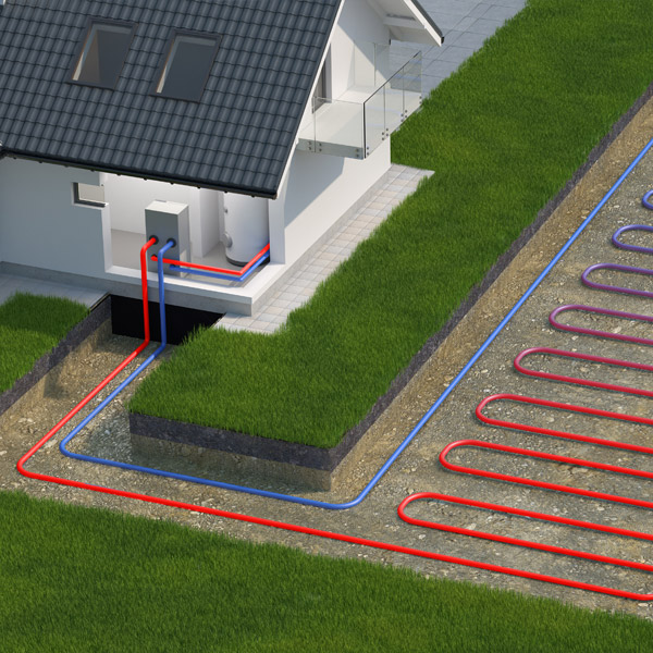 This is where we bury pipework within the ground, which circulates water. The water then absorbs heat from the warmer temperatures below ground and this is then transferred into heating systems.